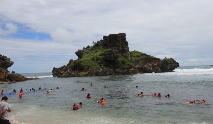 pantai ini terletak di cekungan kecil yang di lindungi dua dinding karang di kiri dan kanan melindungi para perenang agar tidak terkena ombak walaupun begitu ingat tetap jaga keselamatan bila berenang di tempat ini.
